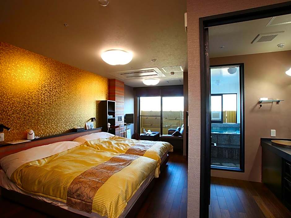 The private open-air bath is a top feature of this family room. The family room includes a private bathroom, well-fitted with a bath, a shower, a bidet, a hairdryer and slippers. The air-conditioned family room features a flat-screen TV, tatami, a safe deposit box and an electric kettle. The unit has 3 futons.